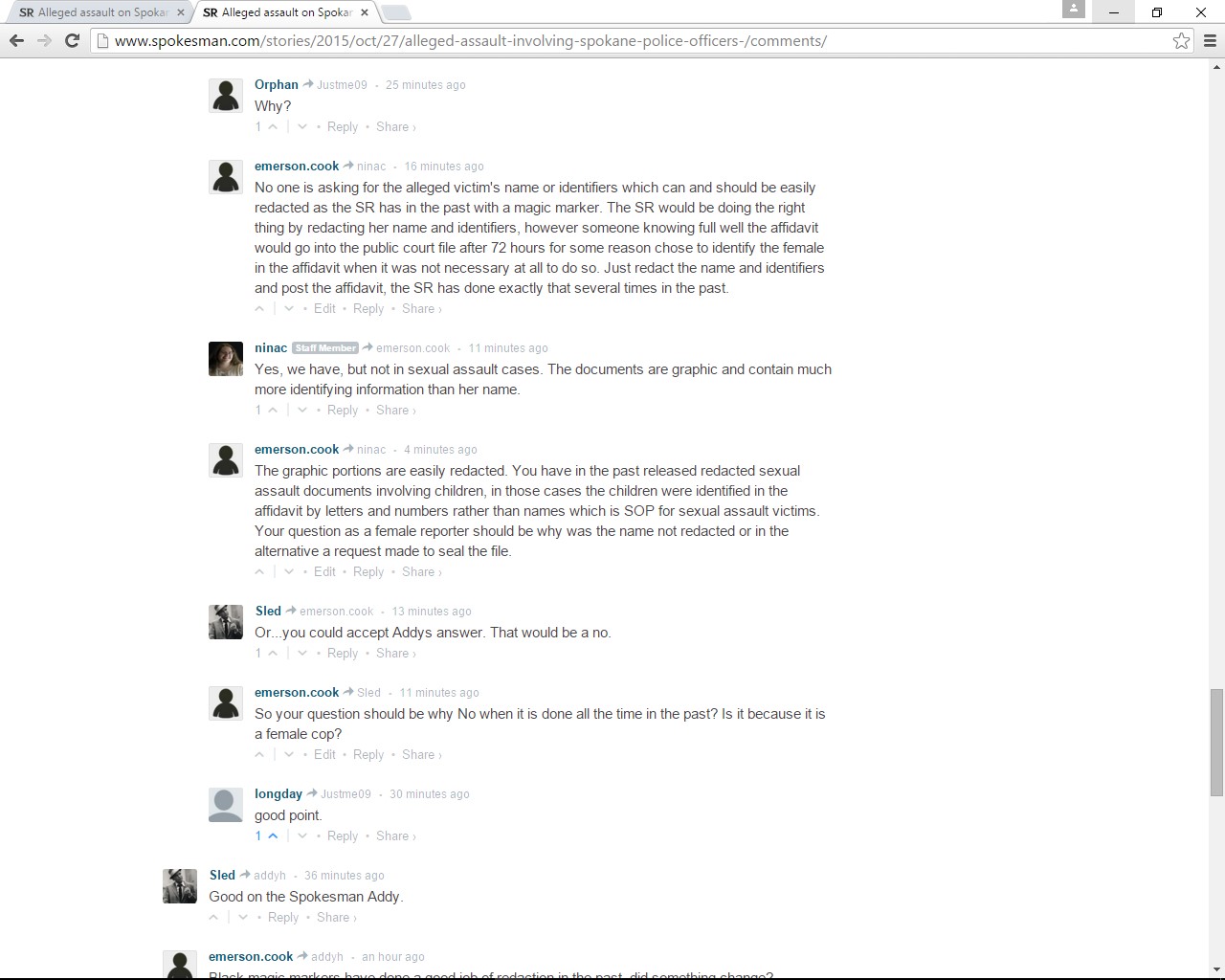 I could easily provide documentation for comment after comment I have made pointing out the lies but in the interest of time and space will provide three. I will also provide media images below of just a few of several emails between myself and Nick Deshais where I demonstrated what was going on and he ignored it. Ignored it that is until four days prior to the election. The Spokesman Review because of their lack of journalistic integrity, and because this is such an embarrassment to them will likely go back and delete all my comments in the three links, so read quickly! If they do delete the comments I will post screenshots of the comments.