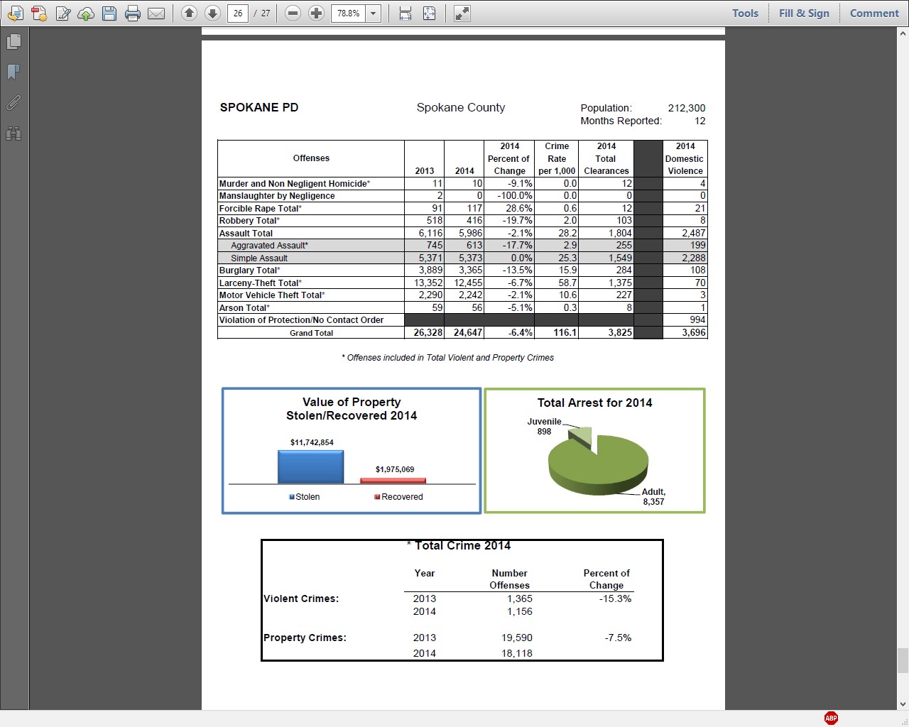 - Were the 1,000 additional Residents of Spokane between 2013 and 2014 just nicer folks so the Part 1 Crimes per 1,000 Residents dropped by (8.5)?