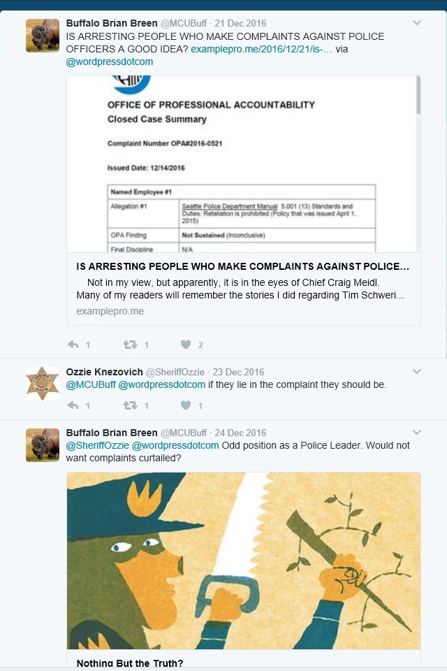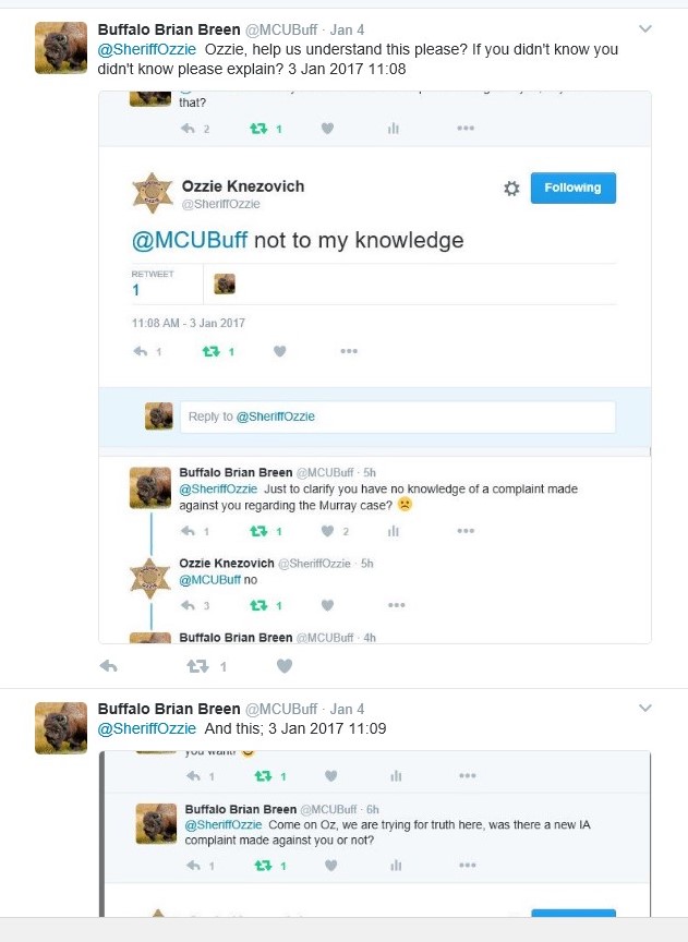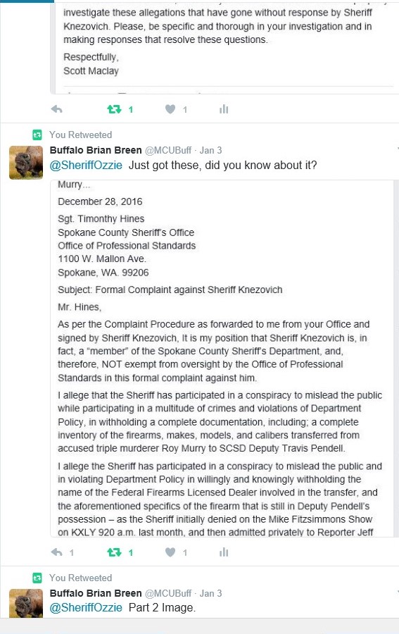 Part of the Twitter interaction was Ozzie denying he was aware of a complaint made against him by Scott Maclay, whom Ozzie describes as one of my friends, even though I have never met the man. As it turns out the IA Case was investigated by Sgt. Tim Hines and Ozzie read a letter on camera Hines wrote to Maclay telling Maclay the case against Ozzie was unfounded. Some folks will be interested in some of the questions I asked regarding the complaint.