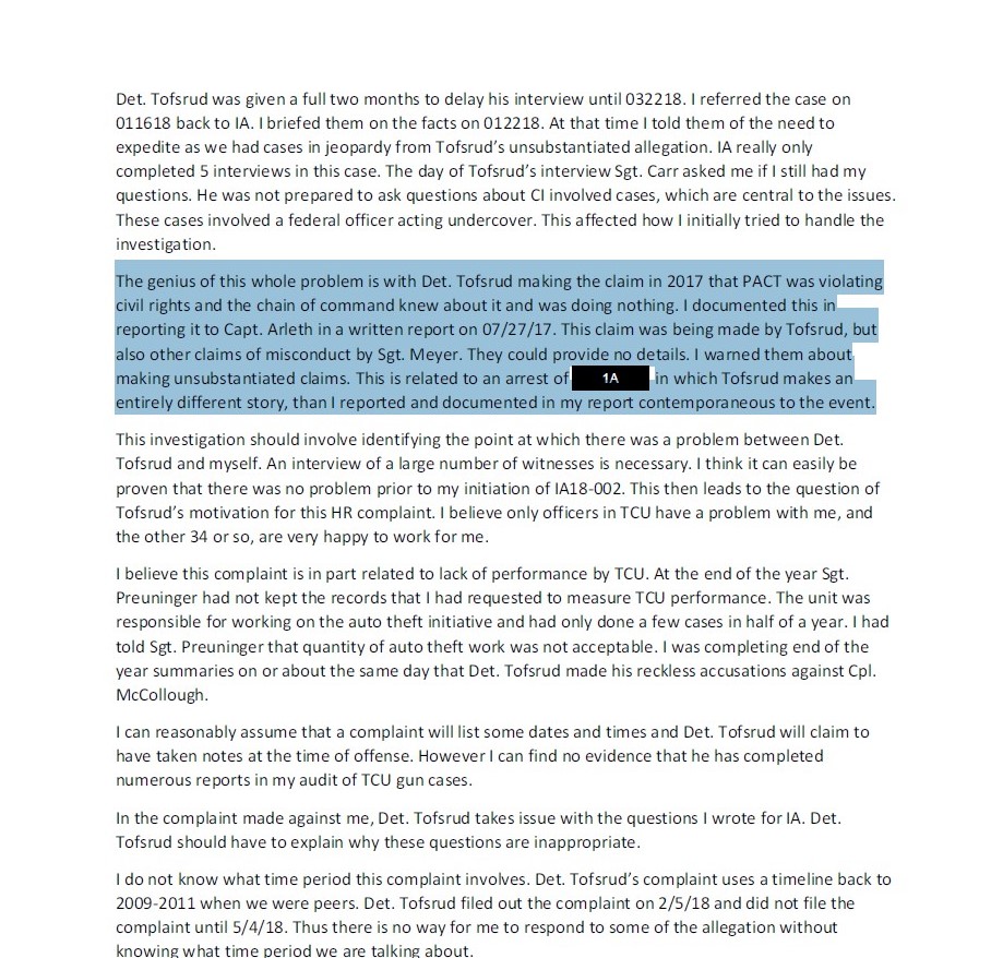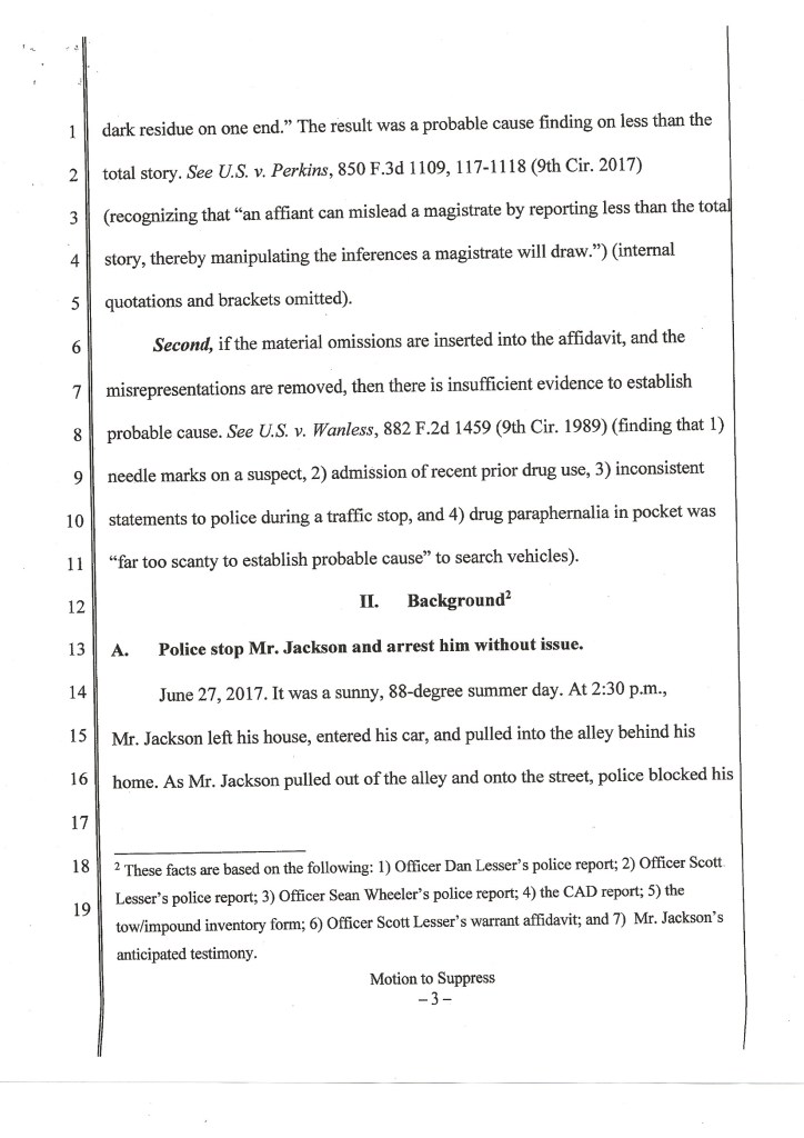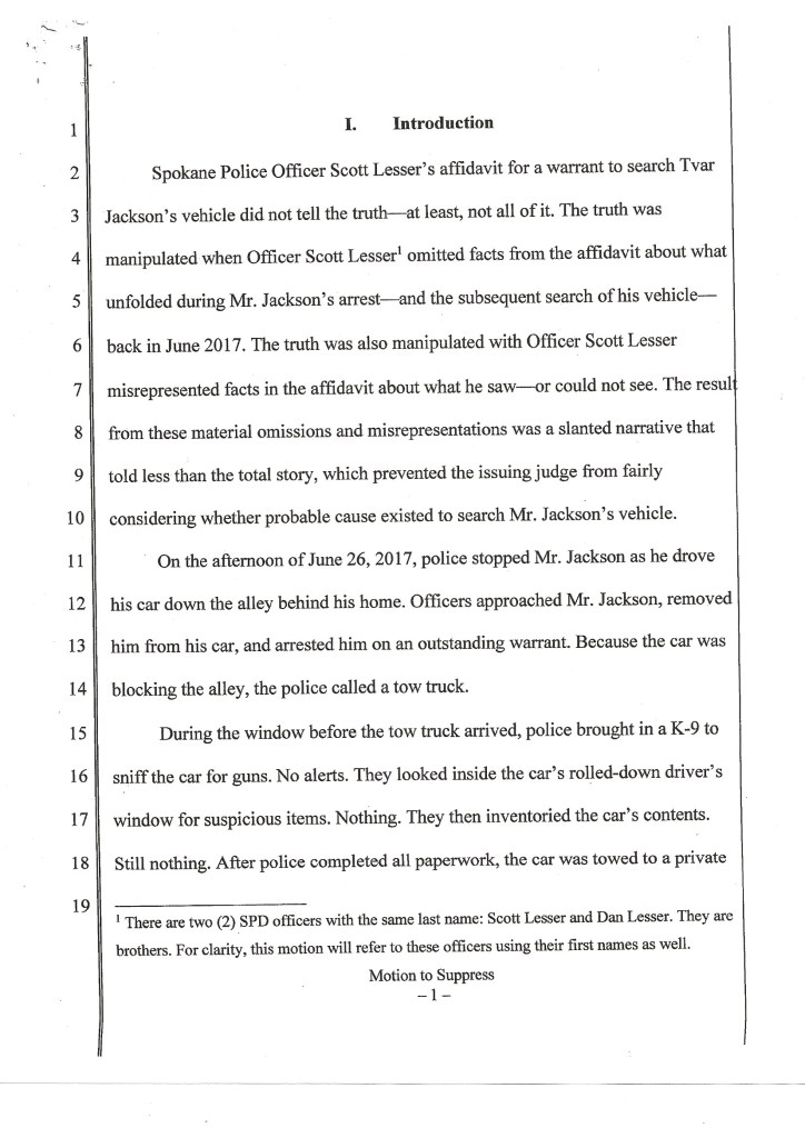 The 33-page very well-prepared Motion to Suppress regarding United States of America v. Tvar Louis Jackson No. 2:17-CR-169-SAB-1 a copy of which I’ve linked below points out considerably more than just seriously questioning the veracity of members of the SPD Patrol Anti-Crime Team it also may very well offer an explanation of exactly why Mayor David Condon, Chief Craig Meidl, and Director Jacqui MacConnell don’t want OPO Bart Logue and his staff as well as the OPOC to have unfettered access to IA Cases and SPD Body Camera footage.