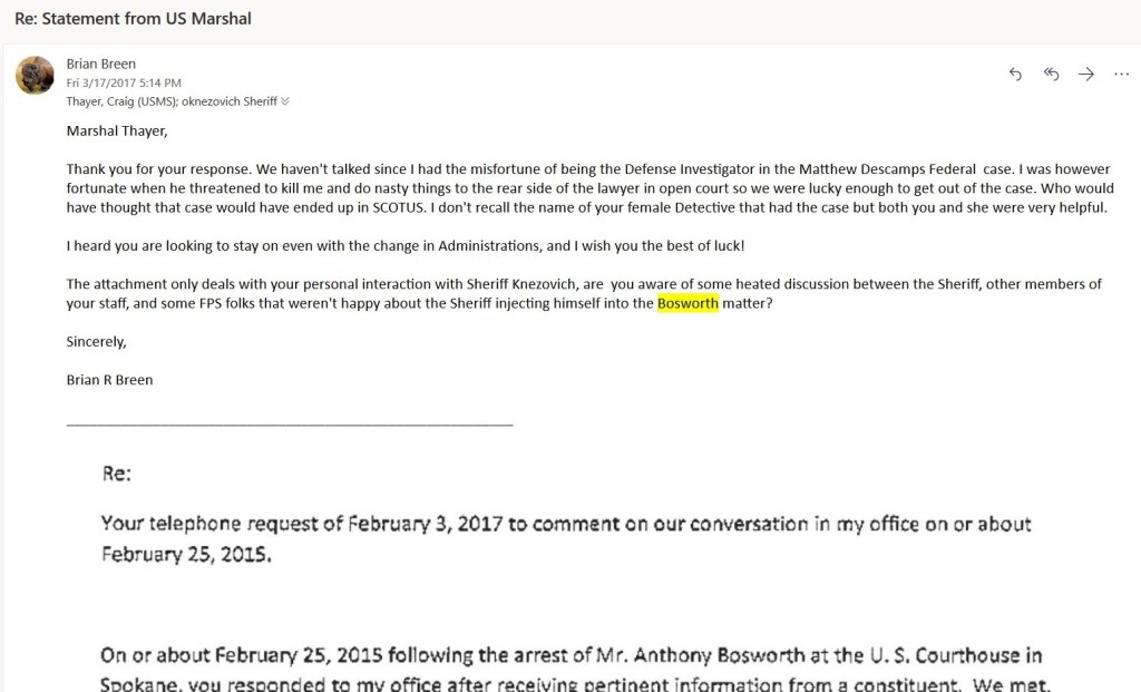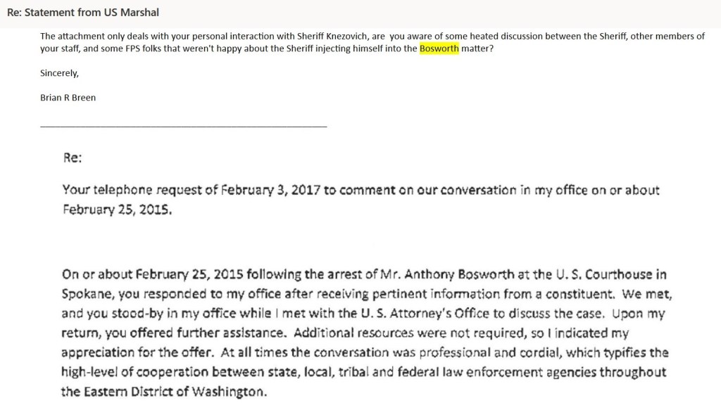 The character in this Cabal that really interests me isn’t so much Matt Shea, I’m more interested in Anthony Bosworth and his friendly relationship with Spokane County Sheriff Ozzie Knezovich. You might remember Ozzie was going to be a witness for Anthony Bosworth when he was arrested at the Federal Building, but for some reason Dave Stevens decided not to call him.