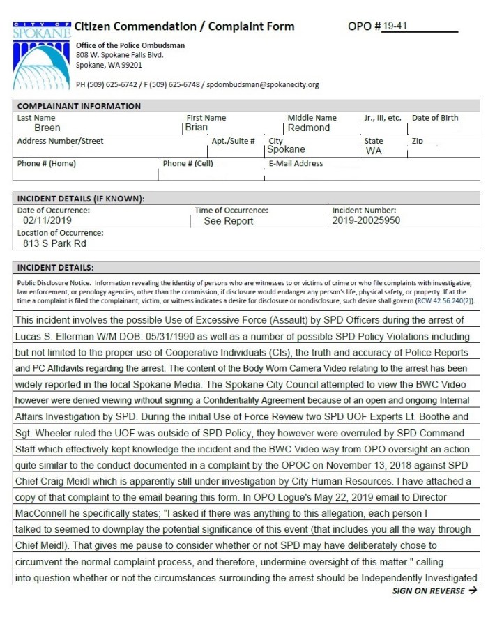 I submitted a formal complaint to the OPO so SPD can now change the complainant