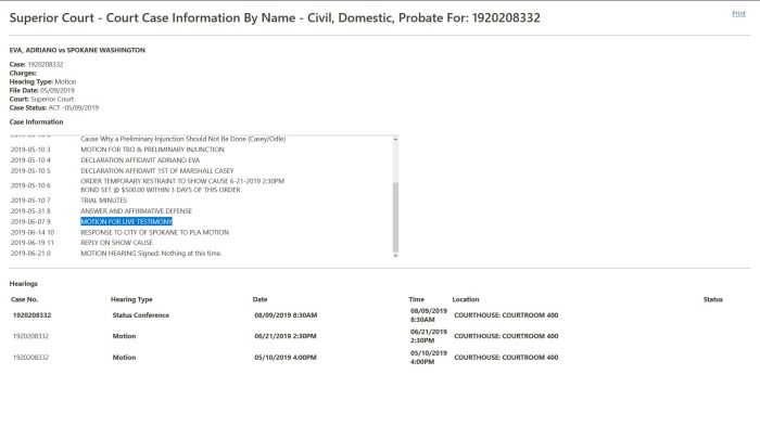 for 08/09/2019, and there is a “MOTION FOR LIVE TESTIMONY” filed which in all