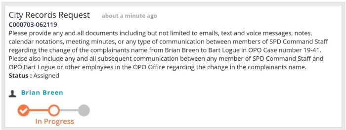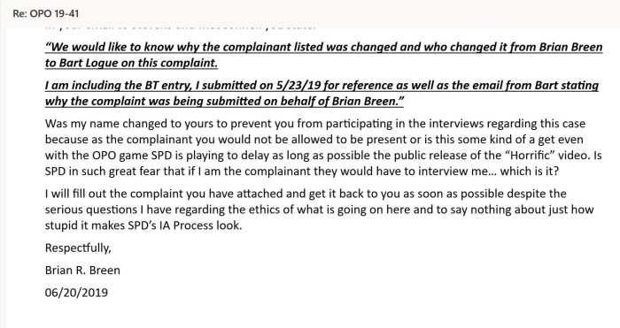 SPD changed my name as the Complainant on the Lesser BWC Video Case to OPO Bart