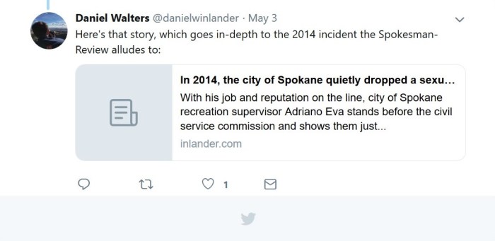 standpoint, the local Spokane Mainstream Media won’t be covering, because it