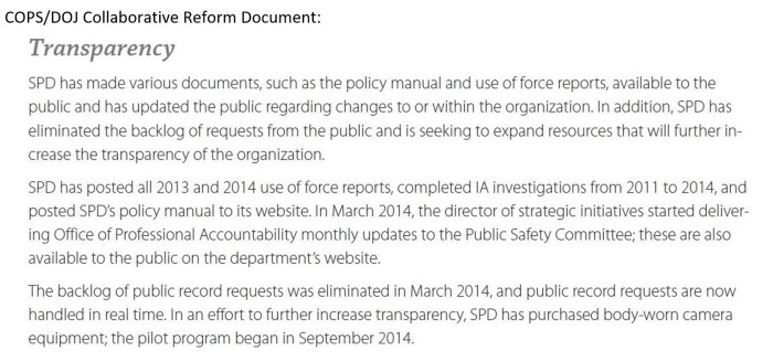There is no question that whomever is elected Mayor will have a significant role in whatever “flux” might continue with police oversight but most people overlook the important fact that perhaps the most important decision for the new Mayor will be the choice of the person to lead SPD, and whether or not that person is willing to change the SPD Culture, buck the political protection game, and establish the all-important transparency which all of Mayor Condon’s choices for Chief of Police have failed miserably at doing.