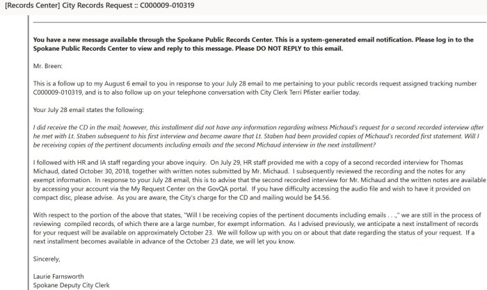 Interestingly for some reason the City Clerk’s Office wasn’t originally aware of the second Michaud interview and it wasn’t immediately provided to them by HR or SPD until it became apparent the records exist. Perhaps when you listen to the actual recording of the second interview linked below you will understand why some people, not the Clerk’s Office, wouldn’t want it made Public.