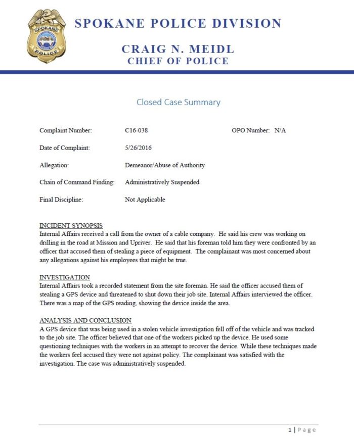 be unless a formal complaint is filed with SPD IA. Any investigation of that