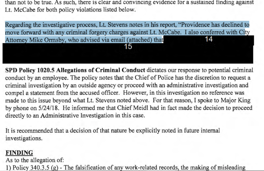 There sure as heck seems to be some conflicting issues with City Attorney Ormsby and Chief Meidl’s people since on several occasions SPD has reported that the City Attorney “did not wish to move forward with criminal charges.”