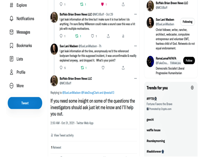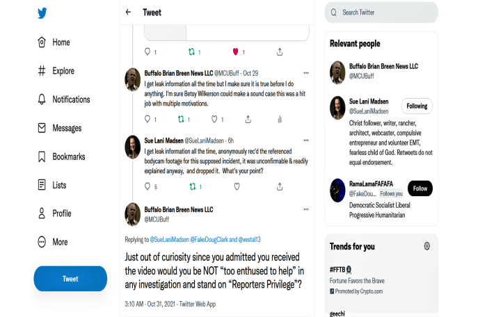 It is pretty darn clear that the Officer Brownell’s BWC video was leaked to a very select group of Conservative folks including Kent Adam’s brand-new News Director Sue Lani Madsen – Forthright at his Spokane Talks business, and who according to her own public statements received a copy of the BWC video and certainly would be a witness in any legitimate investigation as would, at least in my view, based upon information I have a few members of Chud Wendel’s Spokane Business & Commercial Property Council group, where the leaked video received a lot of attention.