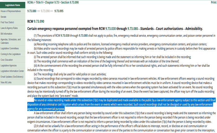 When I was asked to prepare and write the questions submitted to the Washington State Attorney General because of my background and experience with RCW 9.73 in order to obtain an Attorney General’s Opinion regarding Body Worn Camera Laws, several times I expressed my fear that unless accompanying laws were established to punish the inevitable abuse that would take place someone listened.